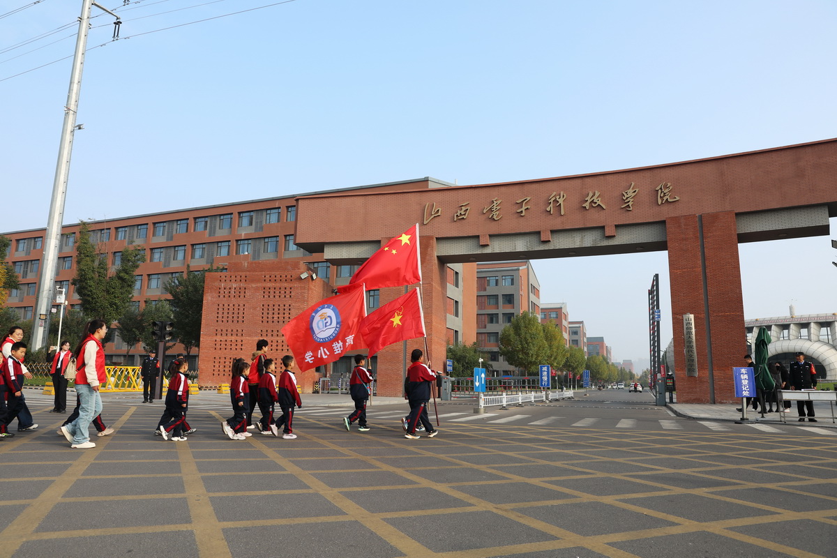 为进一步发挥高校科普教育与文化传承功能,搭建大中小学协同育人桥梁,10月29日上午,山西电子科技学院迎来一批特殊的访客——尧都区刘村镇高堆小学60余名师生,以“树科技梦想 立报国志向”为主题开展研学活动。通过沉浸式参观高校校园、体验电子科技魅力,小学生们近距离感受大学学术氛围与人文底蕴,在心中播下崇尚科学、逐梦未来的种子。