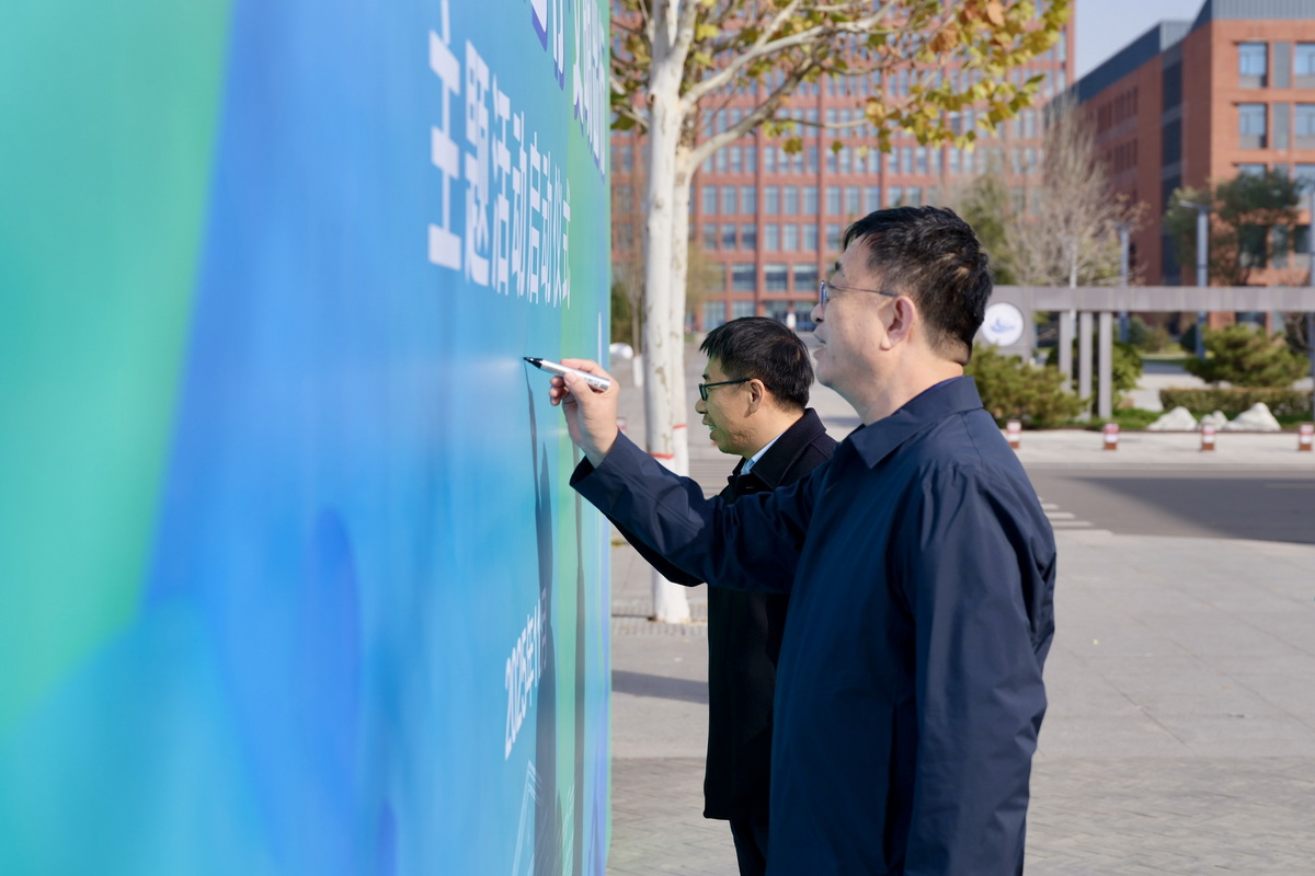 校党委书记扈新起,党委委员、副校长贾建峰在签名墙签名